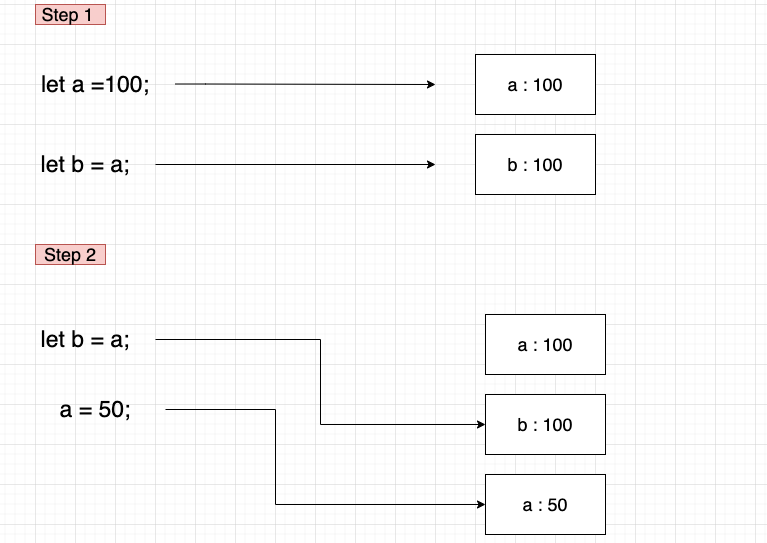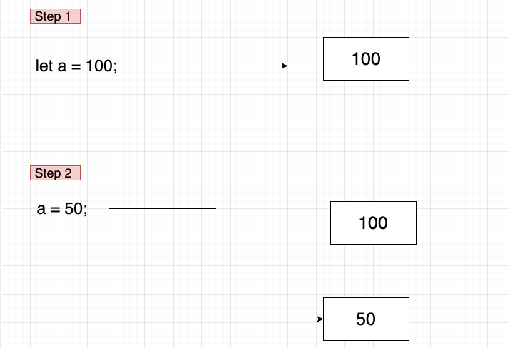 - 불변성(Immutability) : 재할당 시 기존 값이 변하는것 처럼 보일지 몰라도 사실 새로운 메모리에 재할당한 값이 저장되고 변수가 가리키는 메모리가 달라짐