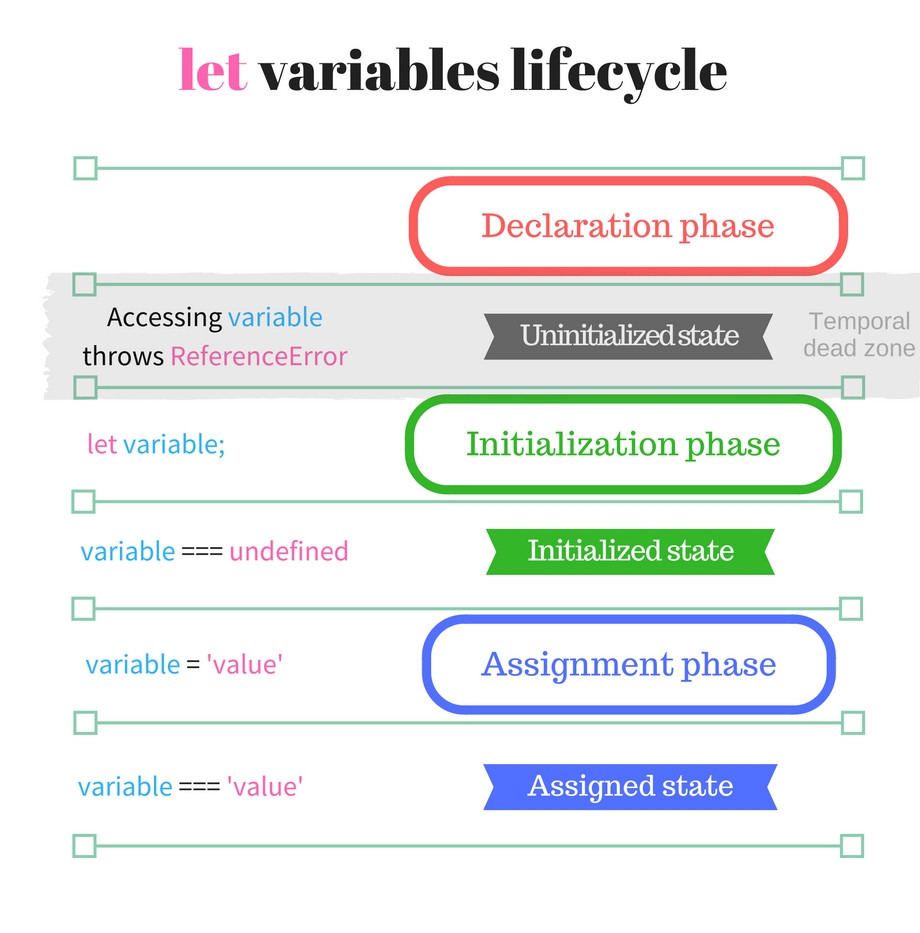 - let으로 선언된 변수는 선언단계와 초기화 단계가 분리되어서 진행