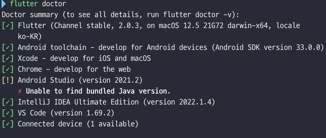 | Flutter Project 시작하기 (+ IntelliJ) (1) | 2022.08.21 |