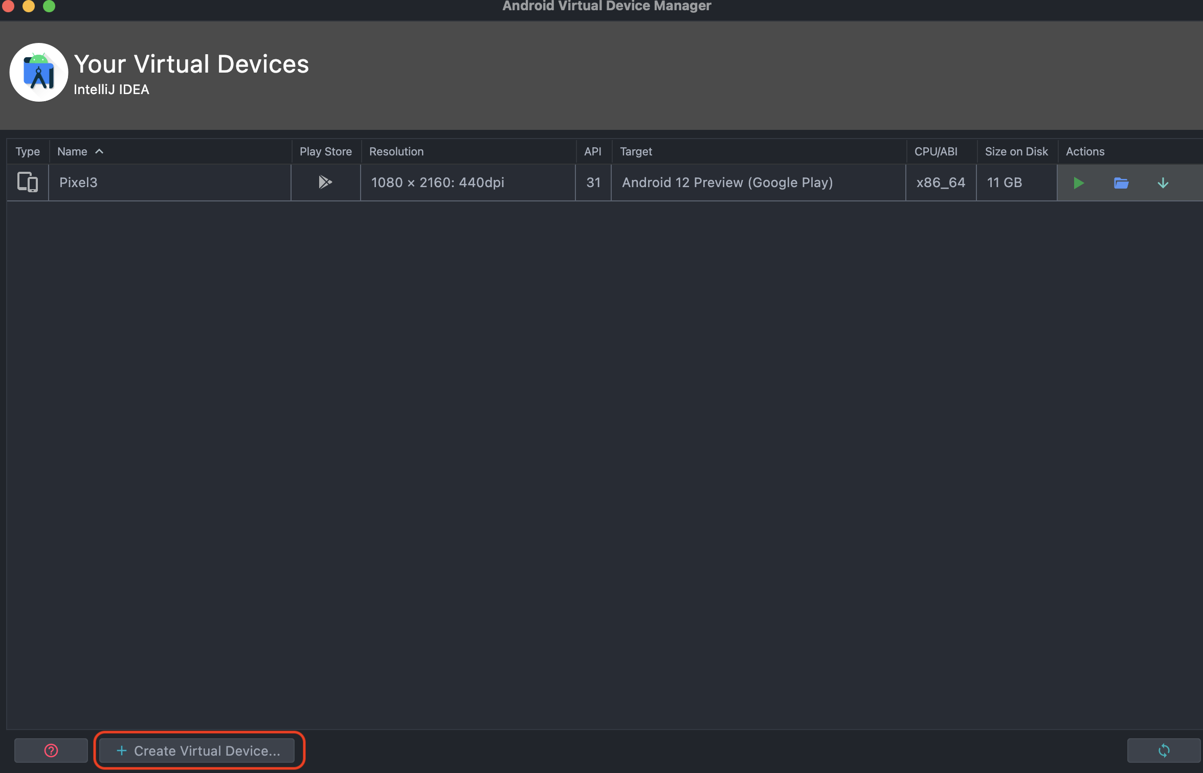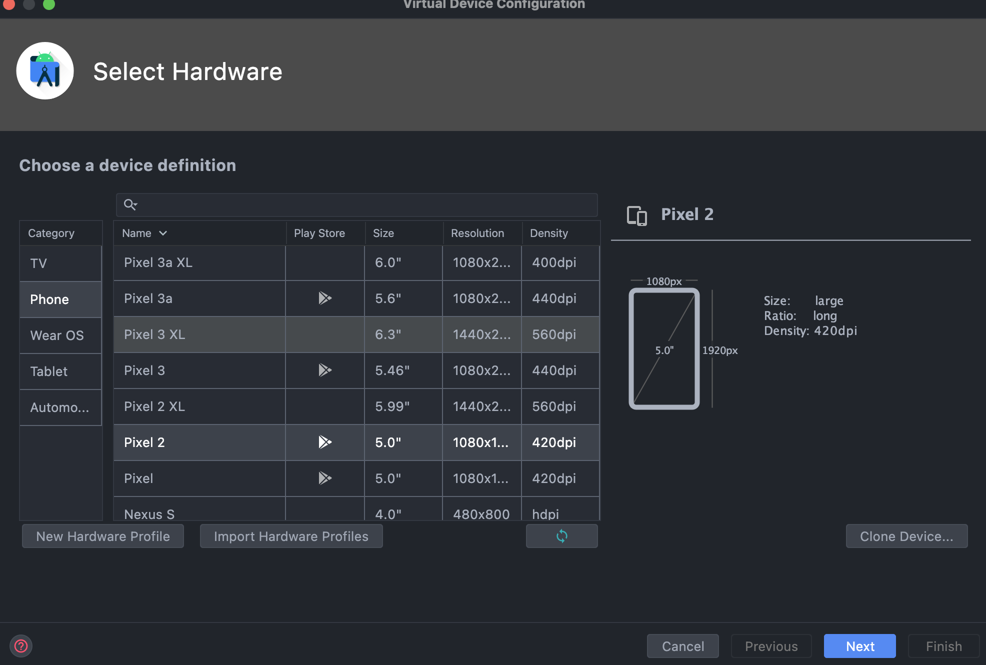 Android Virtual Device(AVD) Setting